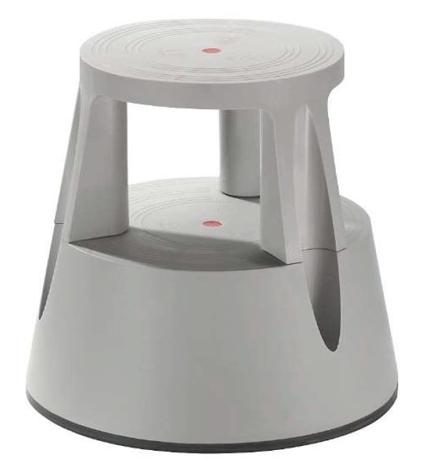 Σκαμπό δύο επιπέδων μεγάλης αντοχής. Διαθέτει τροχούς για εύκολη κύλιση, που υποχωρούν με το βάρος, ώστε να πατήσει σταθερά όταν χρησιμοποιείται.